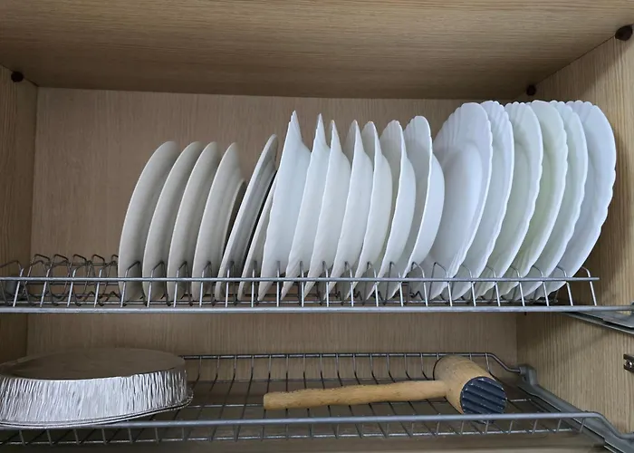 Obiekt noclegowy posiada kuchnię wraz z kuchenką mikrofalową i lodówką. Aby zapewnić wygodny i relaksujący pobyt w obiekcie proponują gościom skorzystać z urządzenia do parzenia kawy/herbaty. Znajduje się również w ciągu 5 min pieszo od restauracji Taverna e Miqve, która oferuje potrawy kuchni śródziemnomorskiej. Ten apartament znajduje się nie więcej niż 5 min piechotą od najbliższego przystanku autobusowego Shkolla Ndre Mjeda.